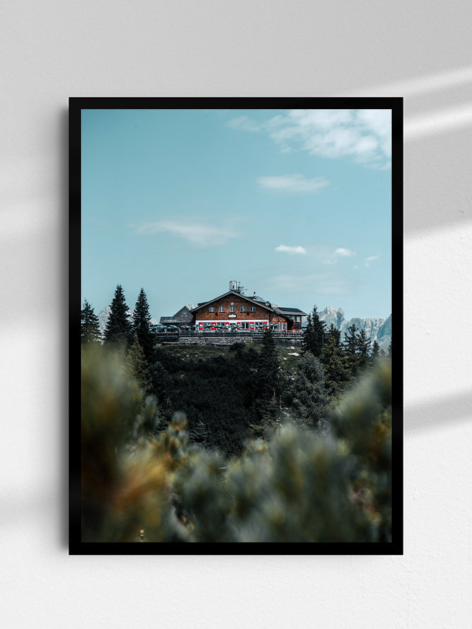 Midt i de østrigske alper ligger denne ensomt placerede hytte, fanget i det perfekte lys. Omgivet af rå natur, bjergtinder og frisk bjergluft står den som et lille fristed i det store landskab. Billedet fanger ikke kun den smukke arkitektur, men også følelsen af ro, enkelhed og nærvær – som om tiden står stille netop her. En hyldest til det simple liv langt fra byens støj.